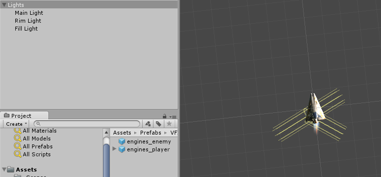 Here's a main light, rim light, and fill light, all bouncing off my main object with varying intensities, hues, and positions. It mostly came down to copy and paste.