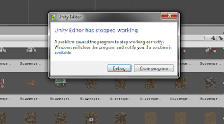 There's my Win32 meltdown that crashed Unity. I'm pretty sure it's because I made an instance of the prefab and then deleted the prefab in an attempt to make a new prefab. I can't be certain, but I suspect it's like having an instance of an object with no object? The important thing is not to do it - very messy.