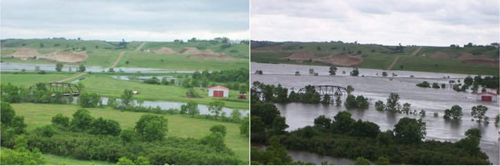 And Audrey sent me this picture of Canada.  This is the same river that flows through Minot.  When we were in Minot, it looked just like the picture on the left.  I can't imagine it looking like the picture on the right.