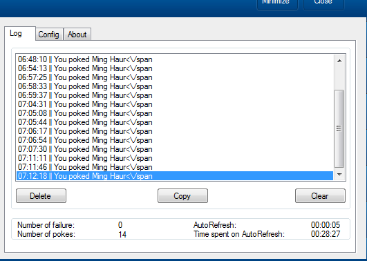 What's that? Ming seems to be wearing out while poking me in Facebook? He just doesn't have the same gumption he once had? Is it like I'm the terminator? Merciless in my ability to poke back? It's like I'm just sitting there waiting for him to poke me? I wonder if that turing test/stopwatch joke makes sense now.