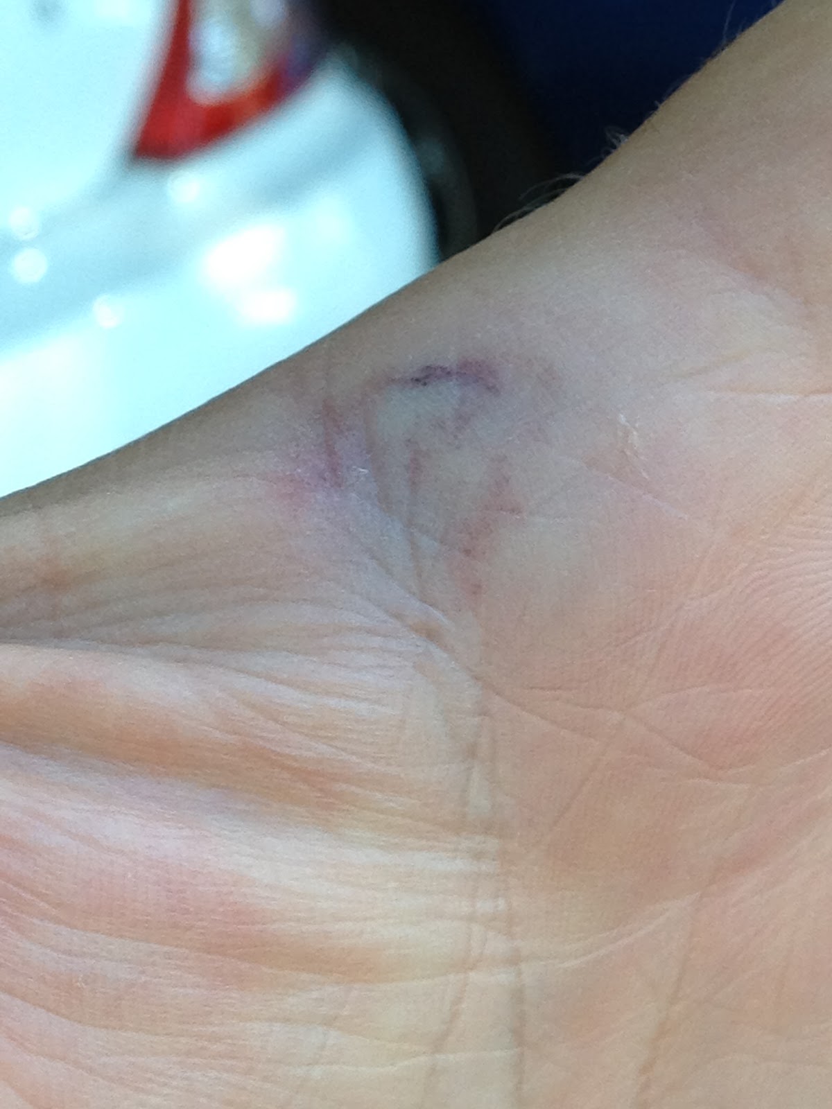 I was my own victim today. Like some idiot, I took the hammer to the end of the crowbar without removing my hand first. Like the world's biggest nail. Sure, it's easy to grab the shaft of the crowbar instead, and I'd been doing it all day, but who the hell has time to make sense. It doesn't look nearly as bad as it is in person. That hand aches. But I didn't break anything, not even the skin - just a big blood blister. I told my wife it's one of my weird superpowers. I heal quicker than usual, like a sub-par Wolverine. I conduct electricity, like a crappy Thor. And now I'm invulnerable, like Superman. But just my skin. My innards can still be pulped. So given enough force, I'll just be liquid in a bag.