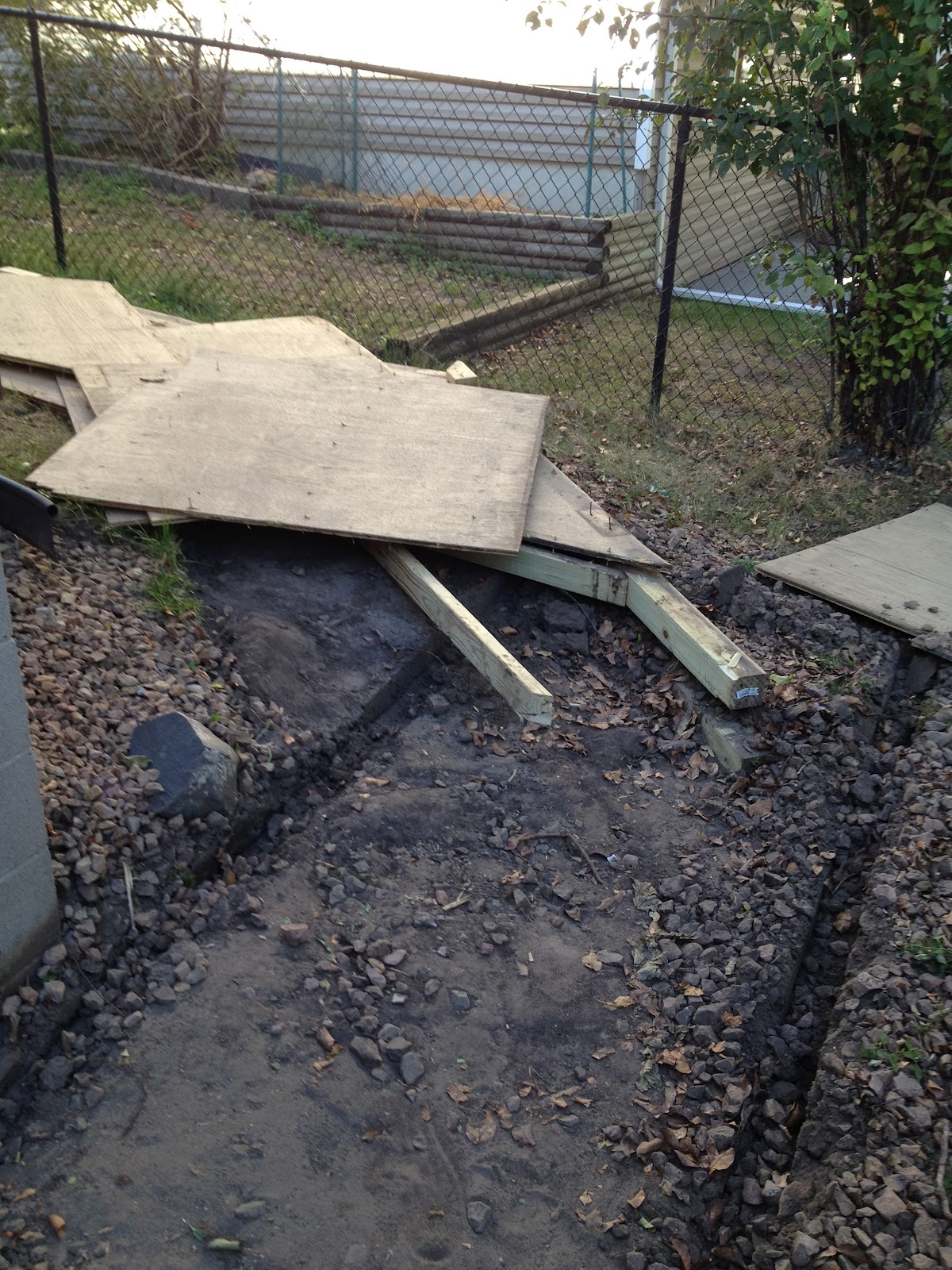 Apparently this was the perfect breeding ground for toads, so I don't know what they're going to do now that their habitat is gone.I wanted to make sure I removed the wood from the back of the house today, even if I don't get it all disposed of for the next several weeks. Feels a little more normal walking the dog out to her pen if I'm not stepping on the wood platform. My wife swept it up so it looks like it was never there (except for that mess at the end).