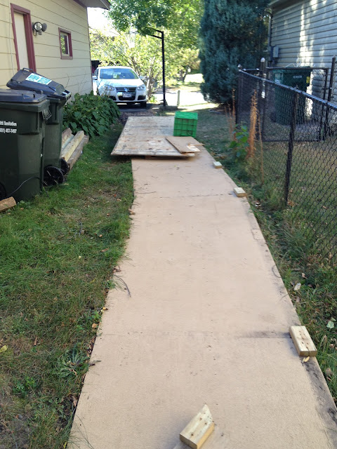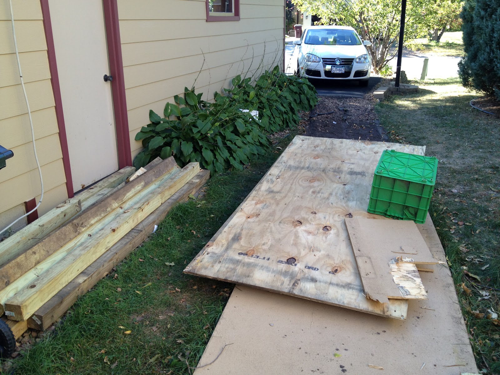 The 2x4s, currently full of a variety of nails. Picture them all cut up in 16" sections stacked four wide by as high as I have sets of four. Jenga! I'm sure some child will eventually be pinned under a stack of wood in a tragic Jenga accident. Then I'll have to turn the 16" sections back into a ramp.