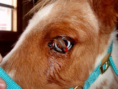 I thought, wtf. I've never seen a horse with its eyelid ripped off. But then my horse experience is limited to the horses at my grandmother's house, which included Goober, who later came to live at our house. Fortunately, someone else had the same surprise and asked, to paraphrase, "wtf?"