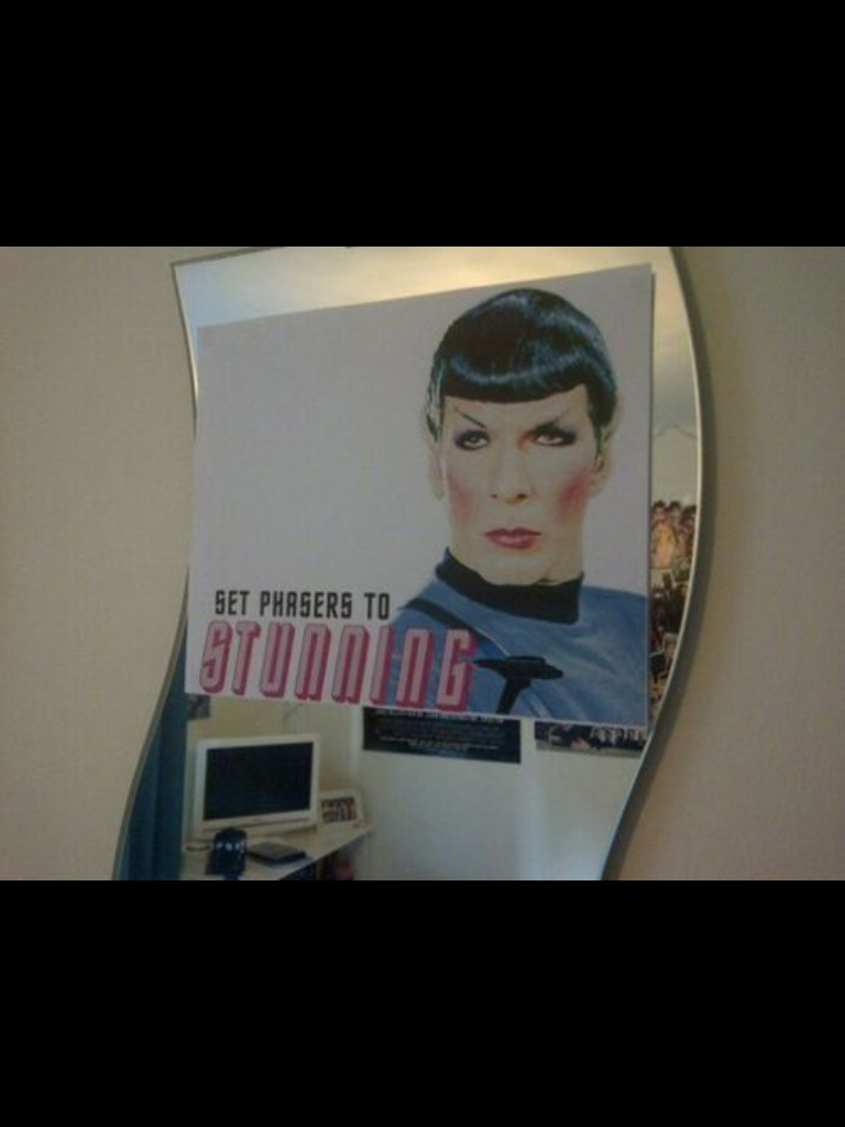 And not uplifting like a quote, but Pretty Spock setting his phaser to stunning is just funny.