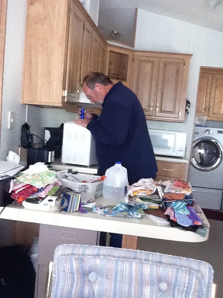 If you're up for it, please leave your submission for a caption contest in the comments commemorating my father and his strange behavior. Something like, "I've been standing here for a week, and the loaf still isn't browning." Or, "If I stand here long enough, I'll catch those bread gnomes in action. They have to get done making cookies at some point." Or, "I prefer light bread."Jesus? If you're in there, would you turn it into a bunch of loaves?" Or, "This should help fortify it with Vitamin D."