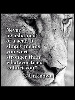 Usually I'm not much into quotes that might describe my life, but I liked, "Never be ashamed of a scar. It simply means you were strong than whatever tried to hurt you." I have a lot of scars. Birthmark. Roster + chicken pen. Roof flashing. Three thumb scars from knives: Katie's pear and two related to carving in Boy Scouts. A scarred toe from the broken jar my brother left in the running path in St. Michael. Stomach, where I almost died as a baby. Knee where I removed a pinky nail cube of flesh falling between the boards at my grandparents' swimming pool/oil pit. I probably have one in a place I wouldn't want anyone to have to look at. Hip! I have the car-related scar that's longer than my abdomen scar is wide. And the knee dent from where they put the post. That's on both sides of the knee. For a long time I had a scar related to pouring a whole pan of bacon grease down the front of my leg at National Scout Jamboree in Virginia. That seems to be gone unless you really look for it. I've got another knee scar (so both knees) that I don't even remember where it came from. A scar on my wrist from a deep burn from solder at the duplex trying to fix a water pipe. That should be all of them. A healthy collection of a life that was more exciting than I intended, although not so exciting that I can point to scars from mountains or sharks.