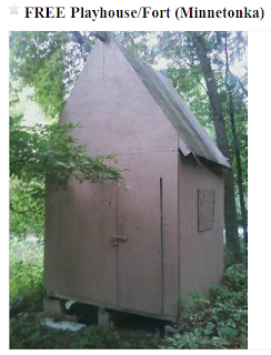 I noticed these things for free on Craiglist in the area. They made me laugh. Is this a playhouse, or just a windowless place to lock up the kids? It seems like a fine line in this case.