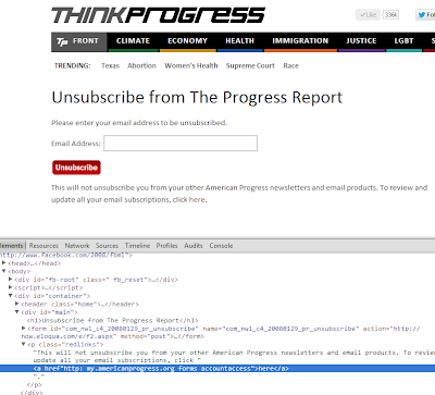 Think Progress has a different trick to keep me from unsubscribing. They forget the // and create a malformed href so I can't click it.